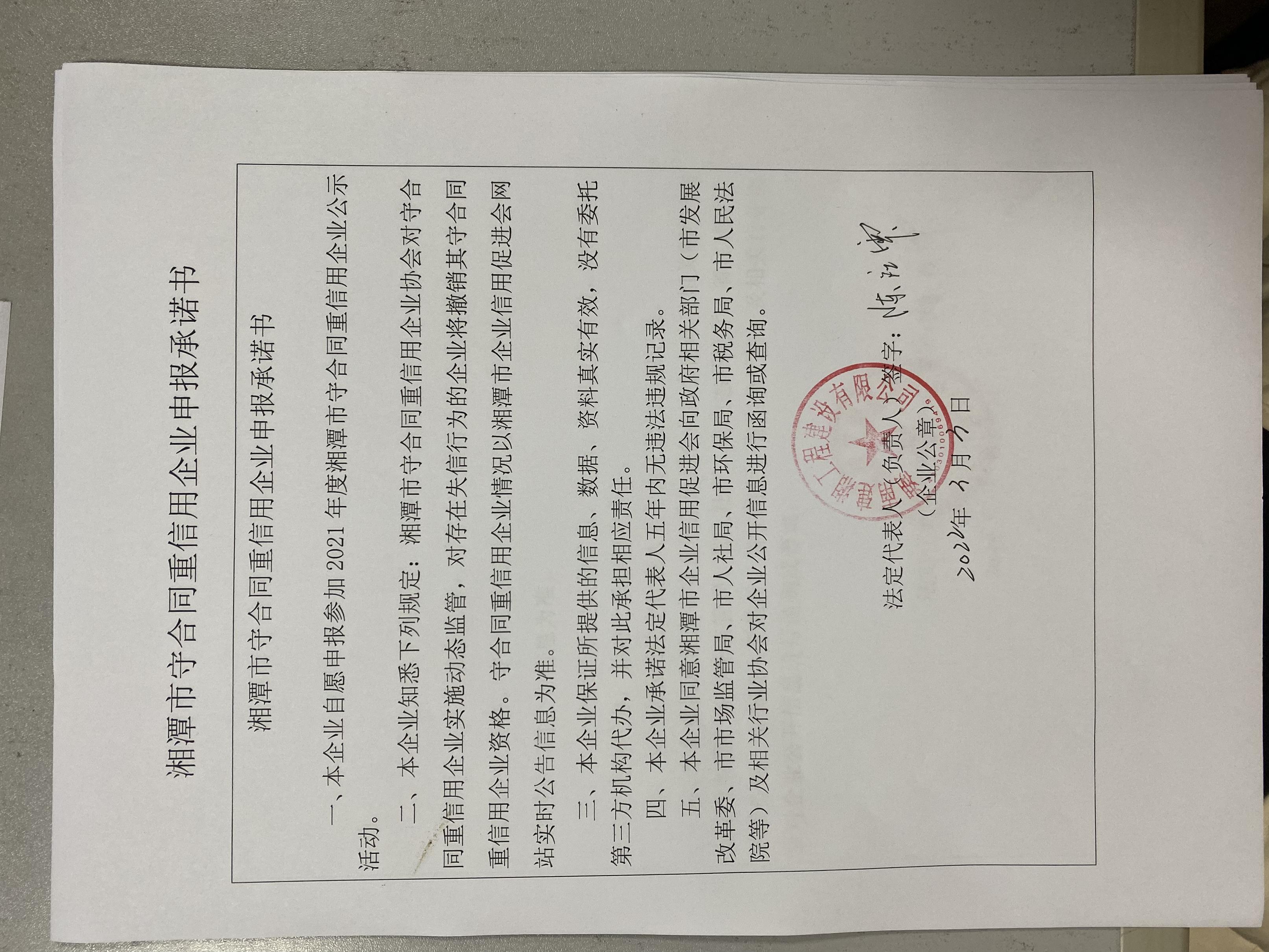本企業(yè)根據(jù)《湘潭市守合同重信用企業(yè)申報規(guī)定》等編制 2021 年度企業(yè)信用報告書,并保證本報告書內(nèi)容真實、準(zhǔn)確、完整。