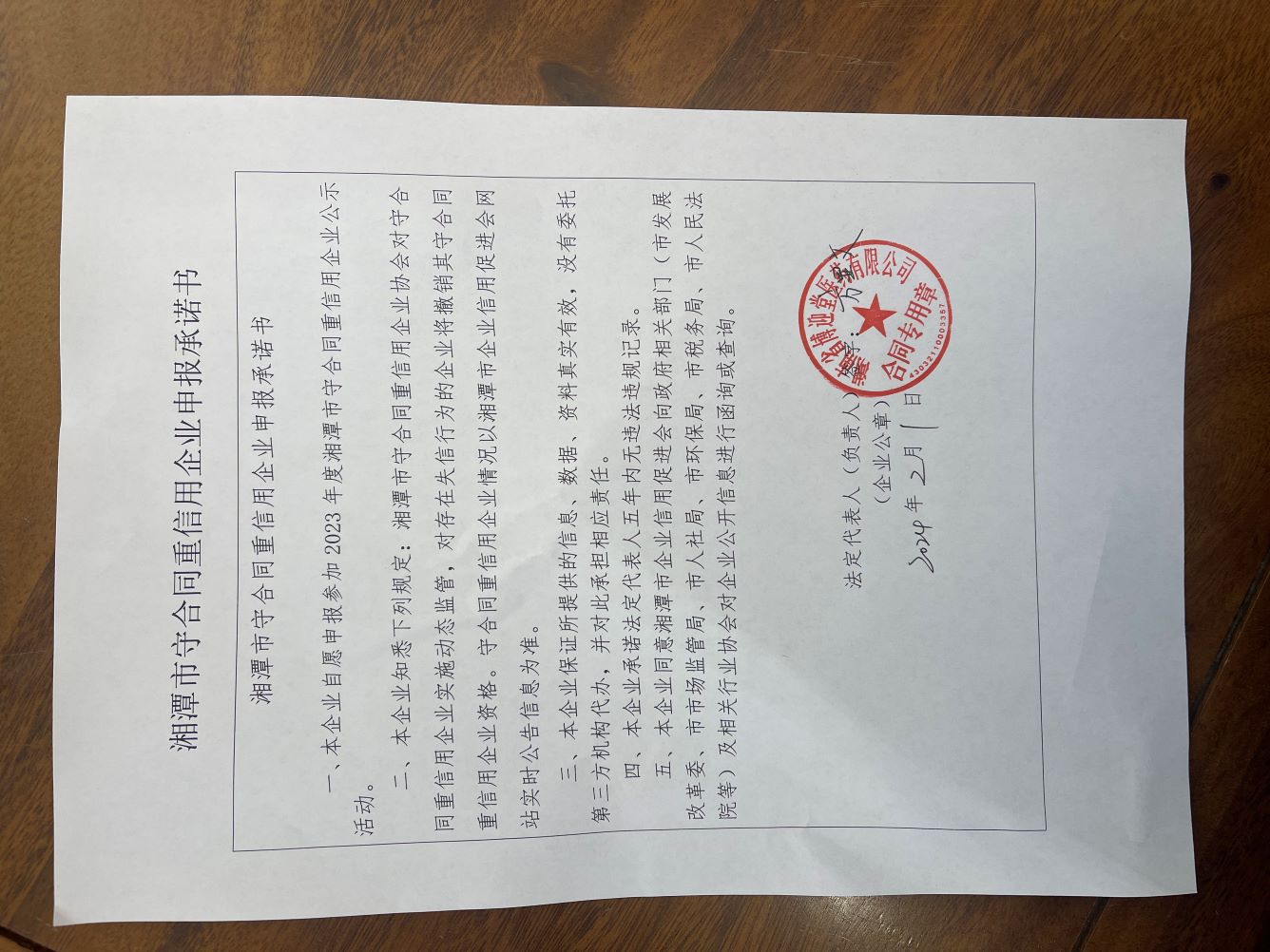 本企業(yè)根據(jù)《湘潭市守合同重信用企業(yè)申報(bào)規(guī)定》等編制 2023 年度企業(yè)信用報(bào)告書,并保證本報(bào)告書內(nèi)容真實(shí)、準(zhǔn)確、完整。