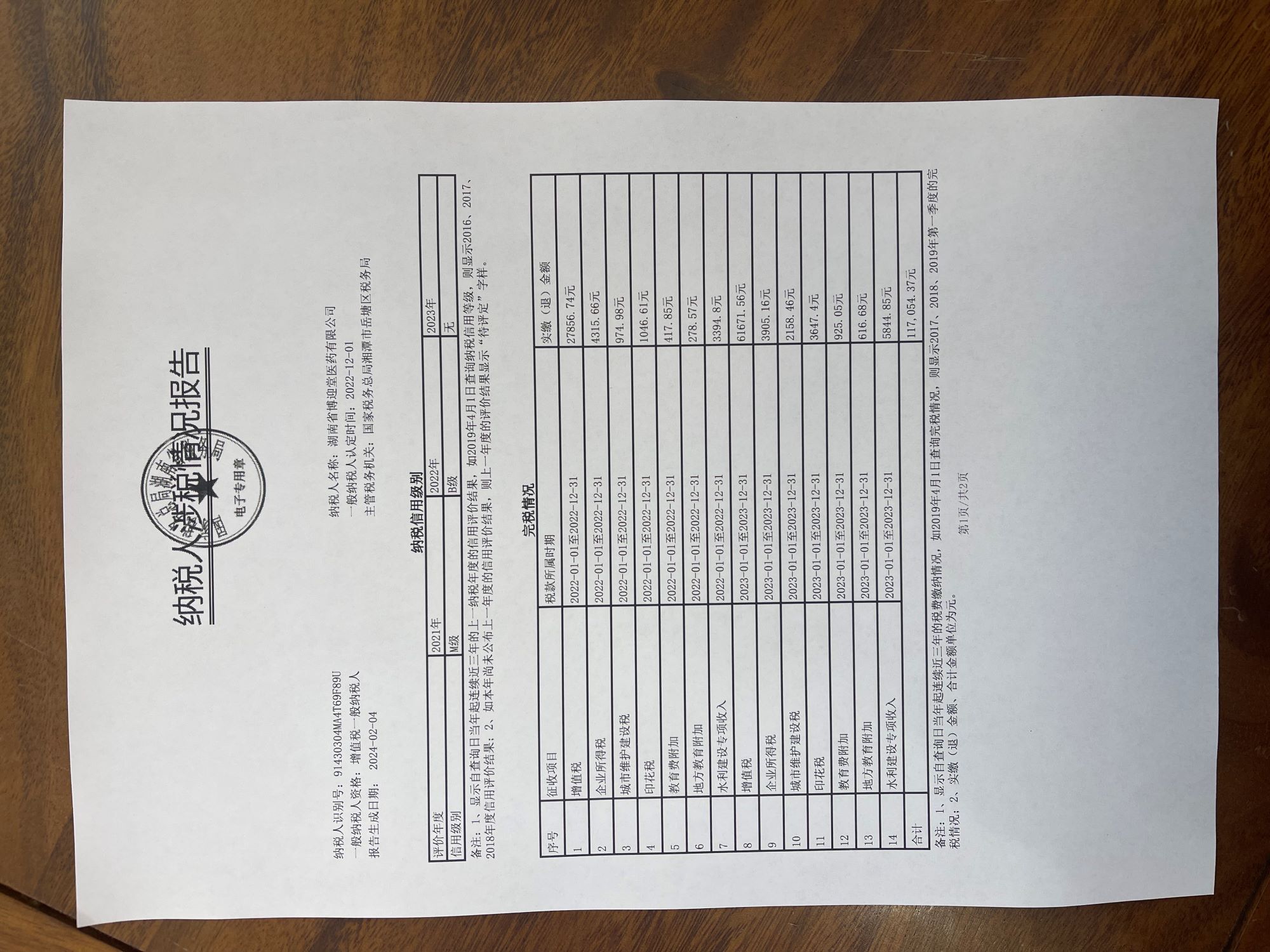 企業(yè)納稅信用等級(jí)報(bào)告: