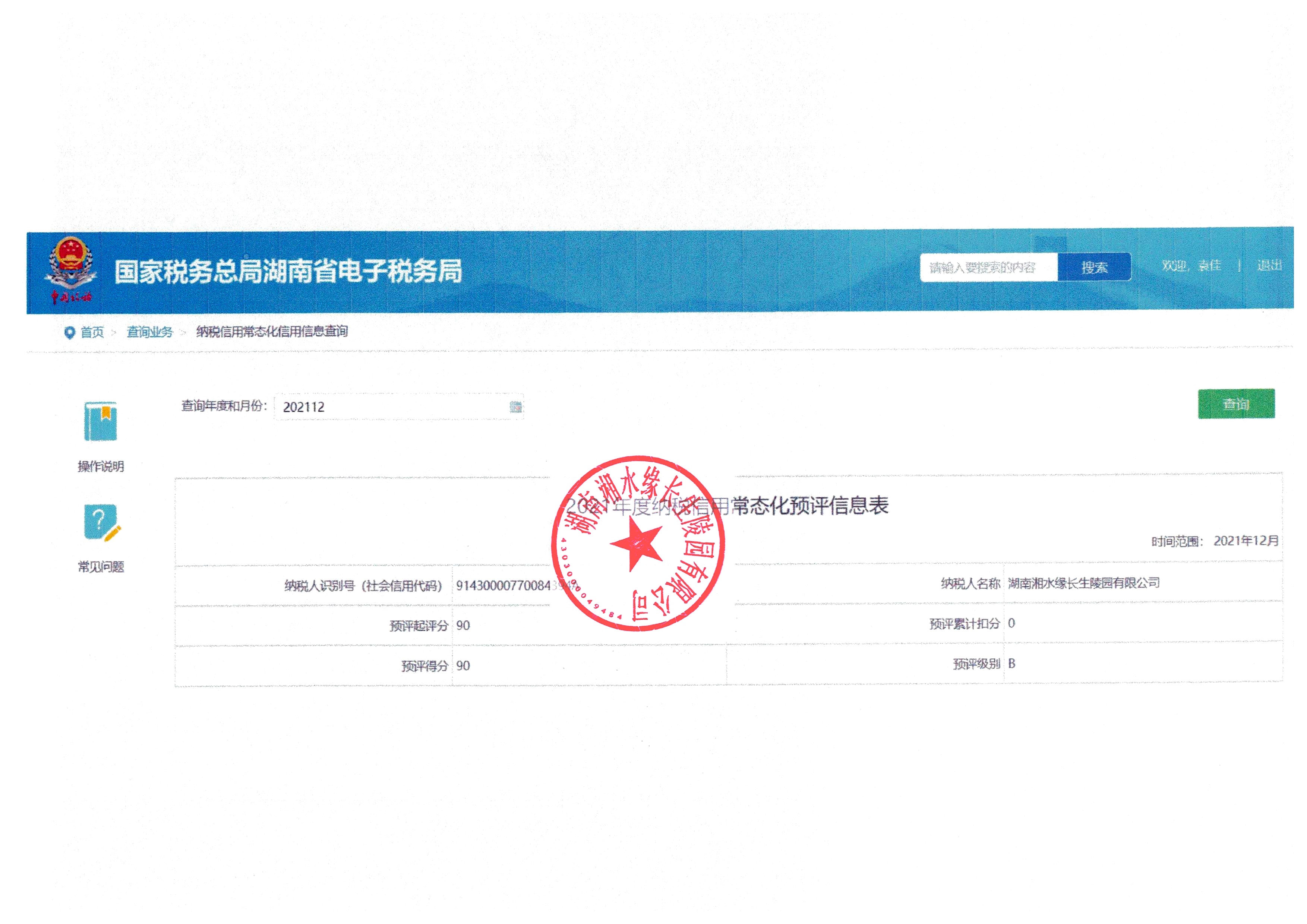 企業(yè)納稅信用等級報告: 2021年度納稅信用常態(tài)化預評信息表.jpg