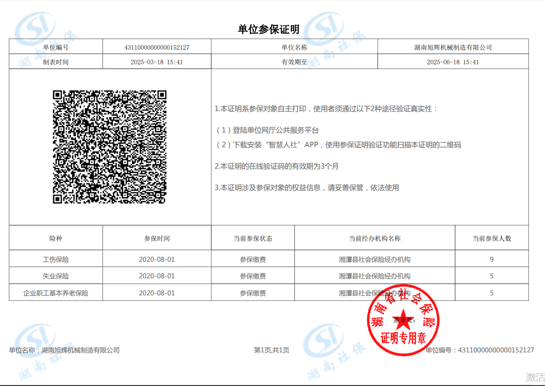 社保繳納證明: