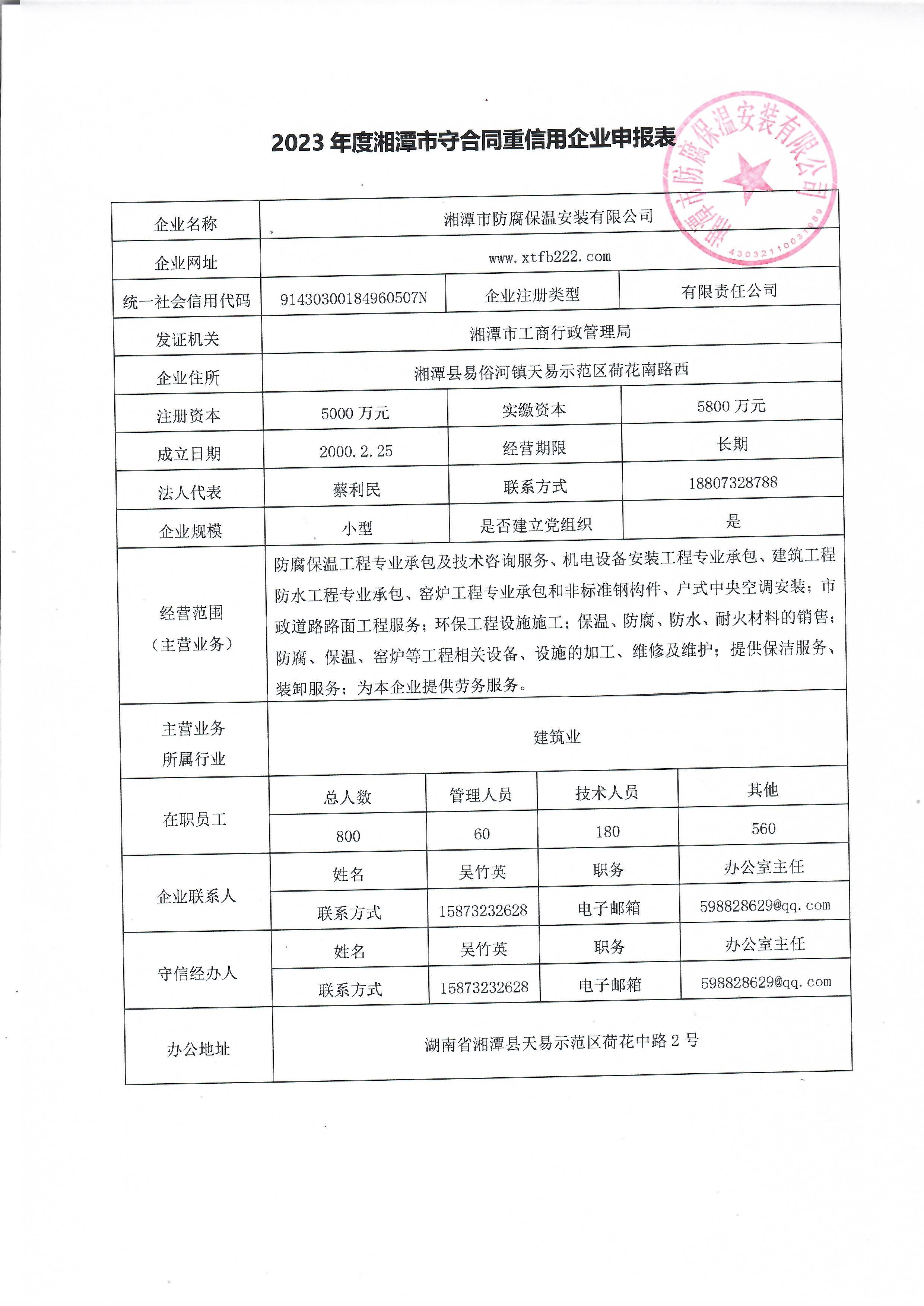 本企業(yè)根據(jù)《湘潭市守合同重信用企業(yè)申報(bào)規(guī)定》等編制 2023 年度企業(yè)信用報(bào)告書,并保證本報(bào)告書內(nèi)容真實(shí)、準(zhǔn)確、完整。